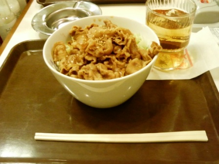 夕飯はすき家で牛丼ライトと豚丼ライトをそれぞれ頼み、半分ずつ食いました。
